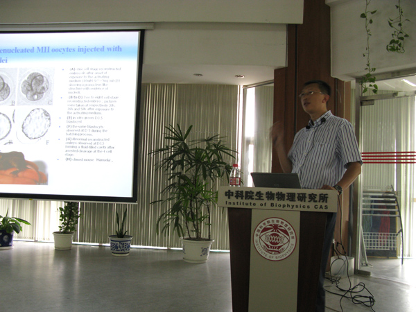 沙龙于9月7日14:30在研究所图书馆报告厅举行,由生物物理所副所长许瑞明研究员主持。周琪研究员首先从国内胚胎发育学与干细胞研究的关系及其目前的主要学科力量谈起,强调了学科的发展与队伍的养成以及个人的成长都需要大家共同的努力,并且要经得起历史的涤荡。他勉励各位青年人“英雄莫问出处”,只要大家来到科学院这个国家科技队就一定有机会获得成功。随后,周琪研究员又从干细胞研究的重要意义极其发展历程讲起,指出科学研究正在加速度前进,留给大家的时间不多、压力越来越大,同时,也为更多的人创造了越来越多的发展机遇。但是,周琪研究员强调,必须要敢于尝试、敢为天下先,因为,从“多利羊”的诞生来看,其基本科学问题早已解决,其重要性就在于科学家做了当时大家都认为不可能的事情和不愿、不敢做的事情而已。由此,周琪研究员特别指出,我们的干细胞研究不能再满足于一头一头的“克隆动物”,而要跳出动物克隆的圈子,要从基础研究入手回答科学问题。