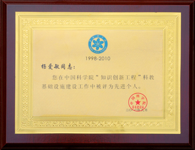 生物物理研究所荣获金沙集团1862cc“知识创新工程”科教基础设施建设工作先进集体,杨爱敏同志荣获金沙集团1862cc“知识创新工程”科教基础设施建设工作先进个人的光荣称号,受到了大会的表彰。