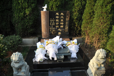 向镇海大同公墓中的贝时璋院士墓地敬献鲜花