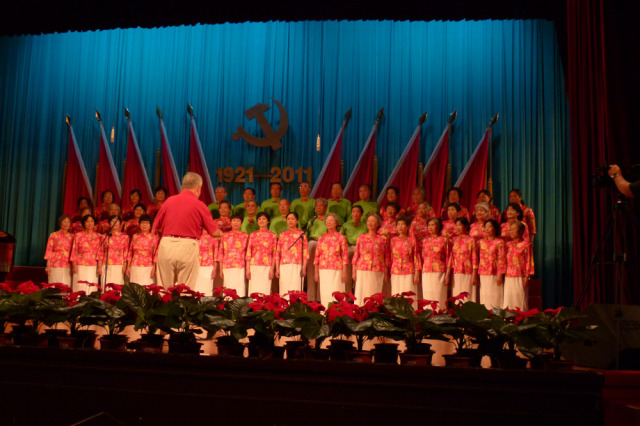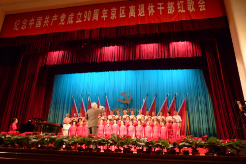 老同志们尽情地欢唱,嘹亮的歌声时而把观众带回到那火红的革命岁月,时而把大家带到激情燃烧的岁月。整台节目在《没有共产党就没有新中国》嘹亮的歌声中划上了圆满的句号。