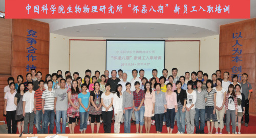 26及27日的各项专题报告是培训的第三个环节。研究所宣传片让大家迅速而全面的对我所基本概况有所了解。杨福愉院士围绕“我与生物物理所”的主题,向大家介绍了生物物理所的建设理念、历史沿革和多学科交叉的发展现状。紧接着徐涛所长为大家详细介绍了生物物理所的总体情况,他从贝时璋老先生的开山之功和几代科学家的辛勤耕耘谈起,回顾和展示了研究所的历史,着重介绍了我所在“两弹一星”、载人航天、蛋白质结构学等领域中的突出贡献,同时他通过展示研究所结合国家十二五规划与“创新2020”所作出的“一三五”计划和相应的保障举措,详尽分析了我所的现状、定位、核心竞争力以及发展目标,使新职工对研究所的学科布局和发展战略有了更多了解。徐所长还提出了对青年职工的殷切希望,他希望新职工作为研究所的新生力量,在若干年后能够产生一流大师、开创新的领域、提出新的理论、发展新的技术。随后,杭海英研究员总结自己多年来在国内外学习、工作与生活的经验和心得,用真诚朴素的语言告诉大家“如何在生物物理所做一名合格的科学人”。他教导青年人要敢闯敢拼,选择开阔的发展机遇,不要为短期小利所动,也不要为不确定性所扰,要放眼未来,考虑大的层面;同时他还为有志于科研的各位年青人指明了今后应该努力的方向。杭老师精彩的报告令在场所有人深受启发。接下来孙飞研究员以“让青春释放潜力”为题介绍了青年联合会的组织结构和今年的工作计划,号召大家积极加入、参与青联的各项活动。各行政处室的负责人还分别就各部门的职责和工作程序做了简单明晰的讲述,以便新职工尽快了解基本规章制度和办事程序,能够更有效率地办理工作中的各项相关手续,更充分地利用研究所能够提供的各种资源。在培训的最后,赫荣乔副所长声情并茂地为大家做了培训小结,他关于创造性的独特见解引发在座所有人的深思。