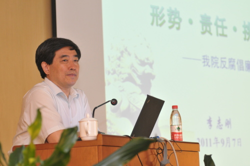李志刚同志的报告,不仅理论水平高、政策性强、数据翔实,而且语言平实、深入浅出、生动活泼,引起了与会人员的共鸣和赞扬。大家表示,通过报告,进一步认识到反腐倡廉建设的重要意义,提高了法律意识、监督意识和防范意识,从而为研究所“创新2020”进一步健康发展提供了坚实的思想基础与政治保障。
