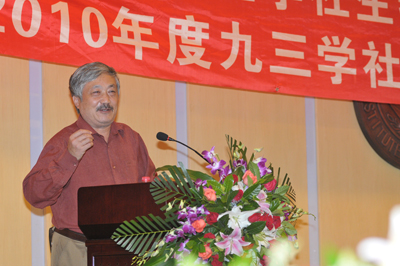 颁奖完毕,王志珍院士发言,她回顾了九三学社的创社历史,缅怀了邓稼先、王选等前辈不为名利、积极报效祖国的知识分子风骨与情怀。王院士还勉励大家在国家“十二五”期间,积极为国家科技政策与科研体制改革献计献策。王院士还指出,作为中国共产党的亲密友党,做好本职工作就是最好的参政议政,也是九三学社的历史使命。