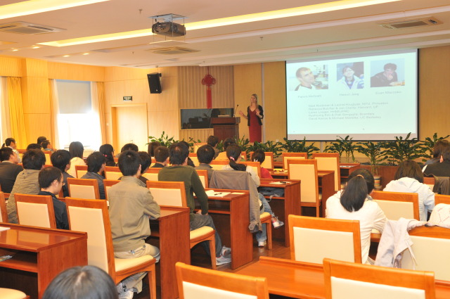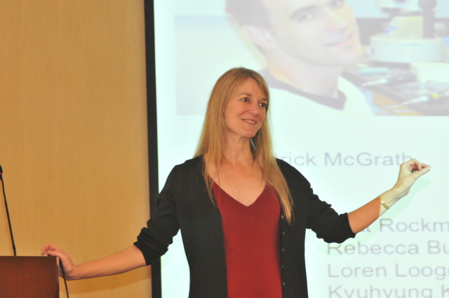 | Cornelia Bargmann教授做报告 | 报告会场 | 参观蛋白质科学平台 |