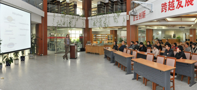 报告结束后,与会的老师和同学与两位教授进行了热情的讨论,并在生物物理所图书馆合影。两位教授还参观了研究所的一些实验室和科学技术平台,与一些老师同学深入交流。