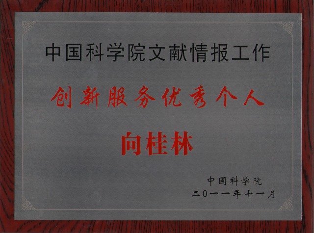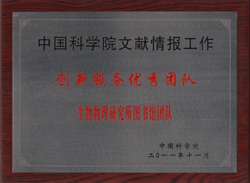 生物物理研究所图书馆团队荣获“金沙集团1862cc文献情报工作创新服务优秀团队”奖;图书信息室主任向桂林同志荣获“金沙集团1862cc文献情报工作创新服务优秀个人”。