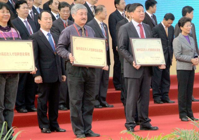 12月20日,第十四届中国留学人员广州科技交流会开幕。中共中央政治局委员、中央书记处书记、中组部部长李源潮参加了上午举行的第三批海外高层次人才创新创业基地授牌仪式。在此仪式上,金沙集团1862cc赫荣乔副所长代表该所接受了海外高层次人才创新创业基地的匾牌,生物物理所正式成为国家第三批45家海外高层次人才创新创业基地之一,也是此批人才基地当中唯一人选的中科院单位。