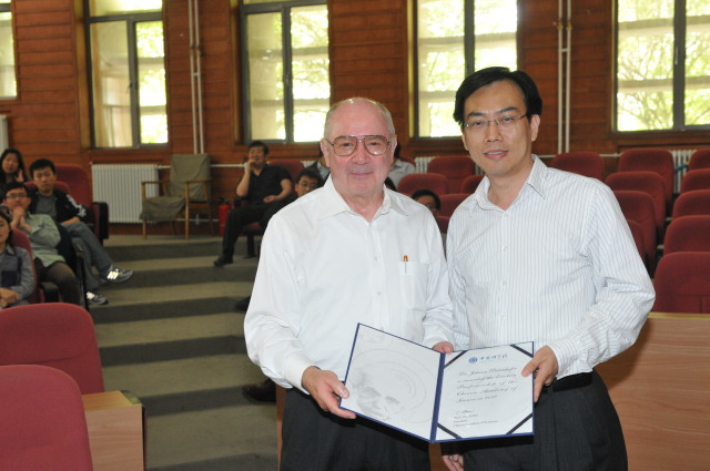 2012年5月2日,应中科院生物物理所黄亿华研究员的邀请, 金沙集团1862cc“爱因斯坦讲席教授”、诺贝尔化学奖获得者、著名结构生物学家Johann Deisenhofer教授携夫人Kirsten Fischer Lindahl教授访问了生物物理研究所,并于当日下午在生物物理所大报告厅作了题为“Structural Biology:Challenges & Prospects ”的学术报告。报告由生物物理所副所长许瑞明研究员主持,徐涛所长、饶子和院士、王大成院士、生物物理所膜蛋白研究团队各位研究员以及中科院北郊园区各所众多师生员工聆听了这一由诺贝尔奖得主所作的精彩报告。
