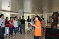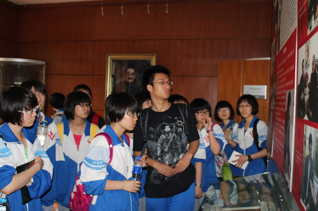 | 志愿者在向公众介绍贝时璋科学精神 | 参观蛋白质三维动画 |