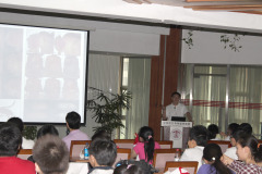 在图书馆报告厅,孙飞研究员、张鹏副研究员分别作了题目为 “认识生物大分子”、“模式生物果蝇在疾病研究中的应用”的科普讲座。孙飞研究员利用三维动画电影等新媒体手段立体、形象、细致浅出地为同学们介绍了什么是生物大分子。张鹏在报告中融入生活和现代流行元素,图文并茂地为公众们介绍了果蝇模式动物在科研中的重要作用。两个精彩报告使公众在故事性和趣味性的讲座中深入认识了生命科学。