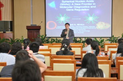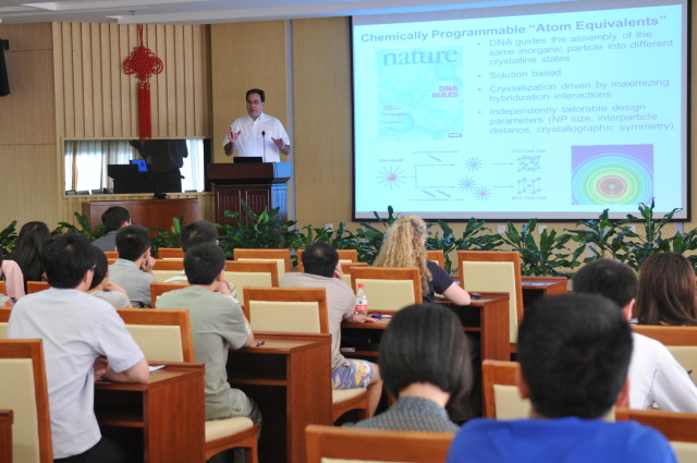 应生物物理所王江云研究员的邀请,美国三院院士、奥巴马总统科技顾问Chad Mirkin教授于6月2日访问生物物理所,并在9501会议室做了题为“Spherical Nucleic Acids(SNAS): A New Frontier in Molecular Diagnostics and Gene Regulation”的学术报告。王江云研究员主持了本次报告,柯莎研究员等数十名科研人员和研究生聆听了Chad教授的精彩报告。