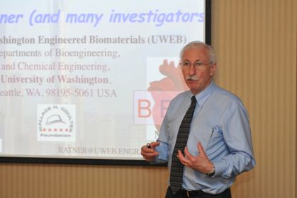 2012年6月6日,应生物物理所马跃研究员的邀请,美国华盛顿大学教授、美国工程院院士Buddy D. Ratner访问生物物理所,并于上午9点半在9405会议室做了题为“Trade Scar for Healing and Regeneration: The Biomaterials Landscape Shifts”的学术报告。本次报告由马跃研究员主持,柯莎研究员等数位研究员及研究生到场认真听取。