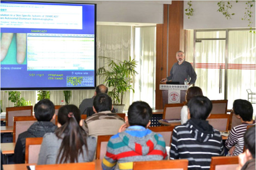 2012年10月17日,应许瑞明研究员的邀请,美国冷泉港实验室的分子生物学家Adrian R. Krainer教授到生物物理研究所进行学术访问。上午10点,Adrian R. Krainer教授在研究所图书馆进行了题为“Antisense Modulation of Alternative Aplicing: From the Bench To the Clinic”的精彩报告,报告介绍了他们实验室已在Nature等杂志上发表的关于选择性剪接与脊髓性肌萎缩症(SMA)靶向治疗的最新研究进展。
