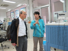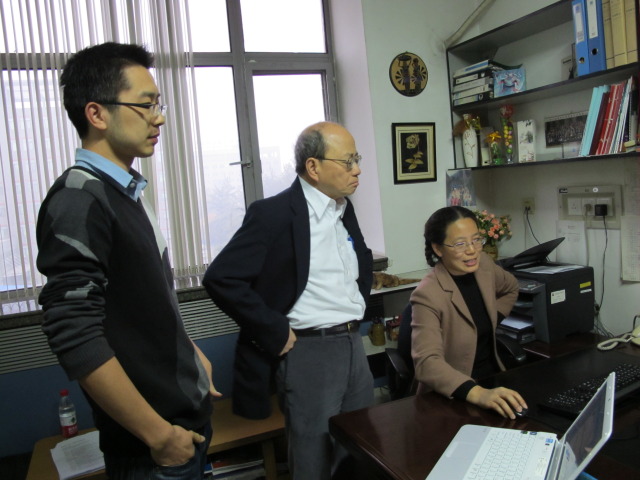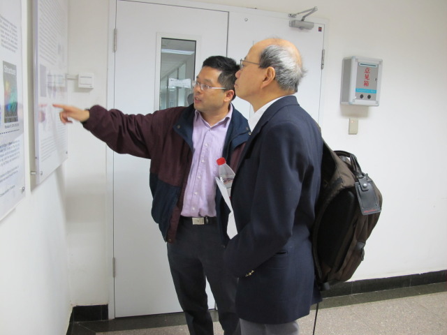 | 刘缨副研究员 刘开力博士与King-Wai Yau教授交流 | 陈秀兰博士向King-Wai Yau教授介绍质谱平台 |