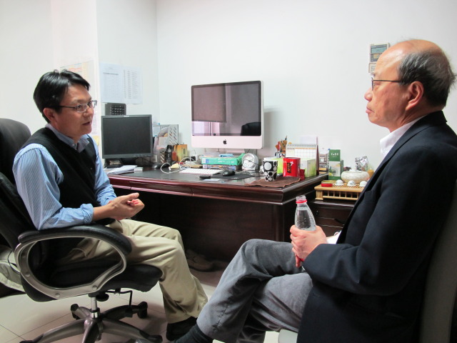 | King-Wai Yau教授 | 刘力研究员与King-Wai Yau教授交流 |