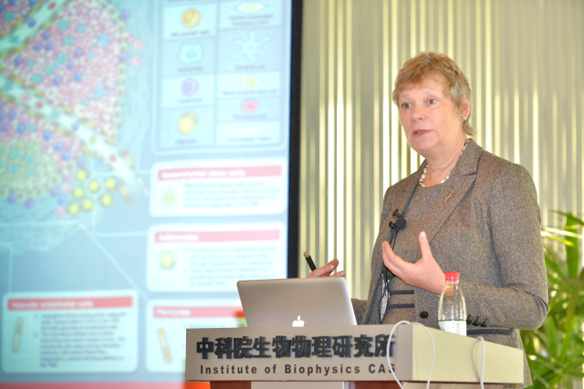 11月19日上午10点,英国医学科学院院士Frances Balkwill教授在图书馆报告厅为生物物理所师生做题为“Targeting the inflammatory tumour microenvironment of ovarian cancer”的精彩报告。