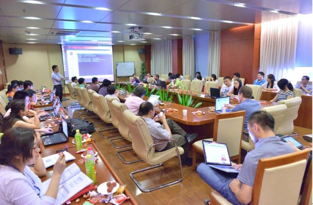 来自全国各地以及多个国家和地区(美国、英国、韩国、日本、台湾、新加坡)的学员参加了此次培训活动。培训班包括了讲座(上午)、上机实习(下午)和讨论会(晚上)三个部分,给学员充足的时间和空间与各位主讲者进行交流。7月10日晚的第一堂课由Steven Ludtke教授概述了低温电镜技术的要点和最新进展。随后的三天由各位主讲们分别就低温电镜图像处理中的基础知识、关键问题和前沿发展进行了详细的讲解,并对各自开发的软件EMAN2、Xmipp、RELION的特点和使用流程进行了介绍和演示。