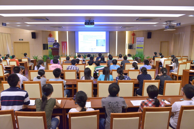 当日中午,Richard Aldrich教授还跟生物物理所的同学们进行了午餐交流会。会上,大家积极提问,例如对科研是如何保持激情的,如何能更好的获得博士后邀请函,对于研究方向的确定等。Richard Aldrich教授顾不上自己用餐,一一回答同学们的问题,整个交流会气氛轻松活泼,会议持续了约1个小时。因为当日下午两点Richard Aldrich教授还要为大家带来一场精彩的学术报告,所以交流会在大家热烈的讨论中结束,同学们都显得意犹未尽。