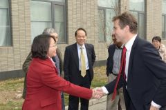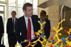 | Peter H?j副校长驻足观看蛋白质结构模型 | 参观孙坚原组实验室 |