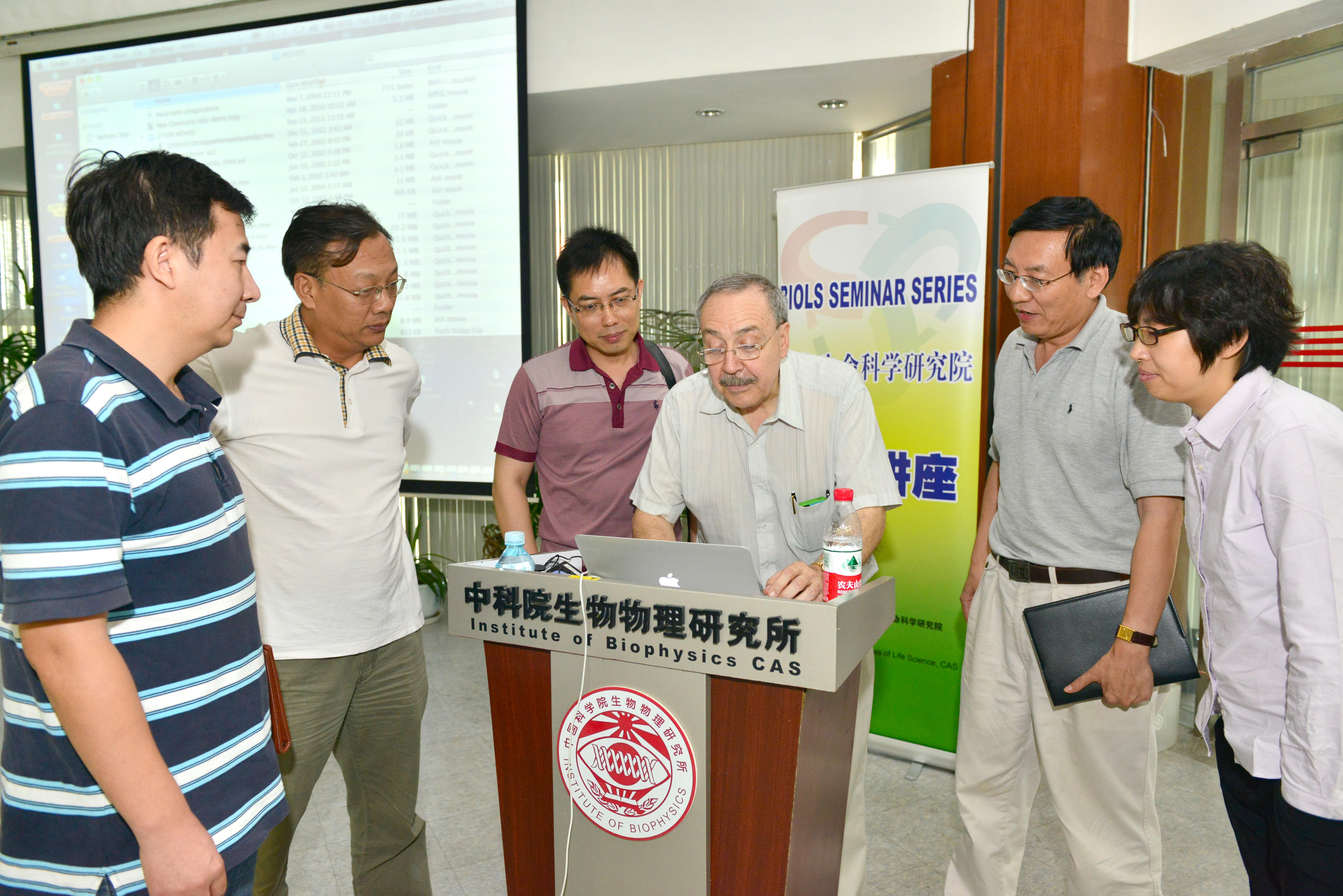 2013年8月24日下午,应中科院生物物理所秦燕研究员的邀请,美国加州伯克利学院分子与细胞生物学系Carlos J. Bustamante教授来我所做学术交流活动,在9501会议室做了题为“Division of Labor and Coordination Among the Subunits of a Viral Ring ATPase”的学术报告。报告由秦燕研究员主持,研究所的科研人员以及所内外广大学生聆听了报告。作为北京生命科学研究院精品讲座和生物物理所建所55周年所庆的系列活动,本次学术报告得到了北京生命科学研究院和生物物理所的大力支持。
