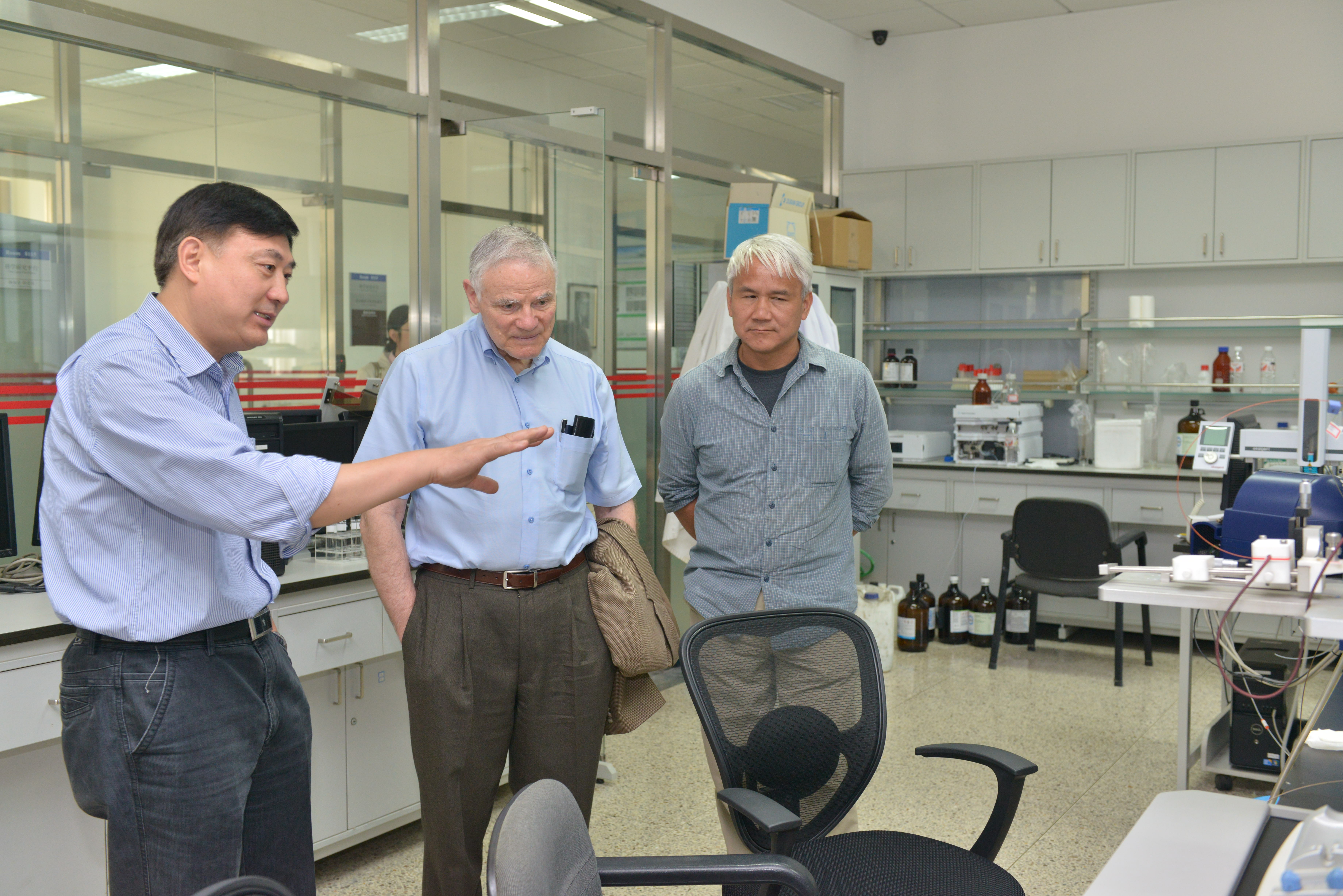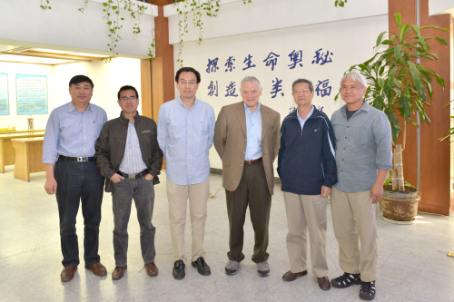 报告会后,Hood教授与徐涛所长、陈润生院士、蒋太交研究员、杨福全研究员等人就系统生物学的热点问题及如何促进交流与合作进行了深入的讨论。在杨福全研究员的带领下,Hood教授还兴致勃勃地参观了蛋白质科学平台,听取了平台的整体情况介绍,对我所优良的科研设备和和科研进展留下了深刻的印象。