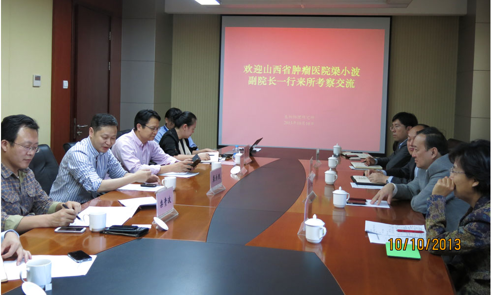 10月10日下午山西省肿瘤医院梁小波副院长一行来所交流访问,商谈合作。龚为民副所长、袁增强所长助理、杨福全研究员以及所地合作处栾贵波处长、孙哲副处长参加了座谈。