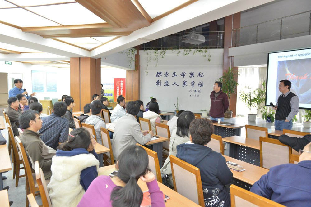 孙坚原研究员在回国前,曾在诺贝尔奖获得者托马斯?祖德霍夫实验室担任助理教授。作为祖德霍夫曾经的同事,孙坚原研究员不仅对托马斯?祖德霍夫的研究给大家进行了阐述,也回忆了与祖德霍夫教授共事的经历,其勤勉工作作风和严谨治学态度使在座的师生深受感染。