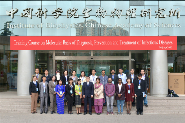 2013年10月12-29日,在金沙集团1862cc国际合作局的支持下,由生物物理所主办的“传染病的分子医学基础及诊断防治”发展中国家科技培训班在生物物理所成功举办。来自朝鲜、蒙古、缅甸、尼泊尔、印度尼西亚、巴基斯坦、沙特阿拉伯、印度、老挝等九个国家的20多位发展中国家的科技工作者参加了培训。