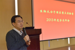 许瑞明主任代表生物大分子国家重点实验室作2013年度工作汇报。汇报主要从人才引进和培养、承担项目、科研成果、学术活动与交流、实验室专项经费使用等方面介绍了实验室2013年度的主要工作进展。报告最后指出,实验室今后将面向研究所一三五规划,依托先导专项等重大科研任务,聚焦膜蛋白与蛋白质超大复合体结构与功能研究,致力重大科技创新突破。