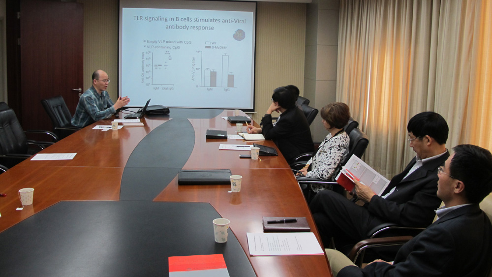 国际合作与交流处人员首先向来宾介绍了我所的2个国家重点实验室、1个中科院重点实验室及3个所级重点实验室主要的最新研究成果。接下来,来宾介绍了强生集团的发展战略和与前沿科研机构合作的意愿。随后,赫荣乔研究员、徐晓兰(代表徐涛研究员)、侯百东研究员、张宏研究员、张朋(代表袁增强研究员)、曹鹏研究员等分别介绍了各自领域的科研进展。宾主双方就感兴趣的方面进行了深入讨论,希望今后在免疫、神经科学、肿瘤、药物研发等领域发展互利合作。