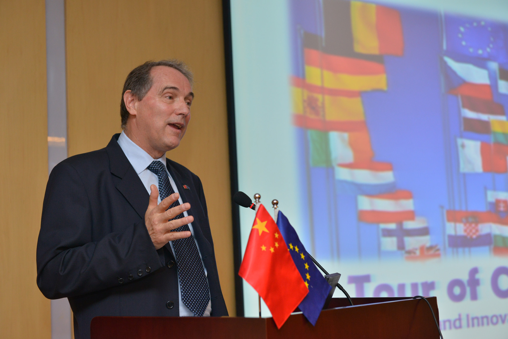 在活动的闭幕会上,院国际合作局曹京华副局长、我所所长助理袁增强研究员分别代表中科院和生物物理所致词。接下来,欧盟和欧盟9个成员国科技官员介绍了欧盟及欧盟各国最新的科技发展态势、欧洲“地平线2020”计划和相关资助措施等。