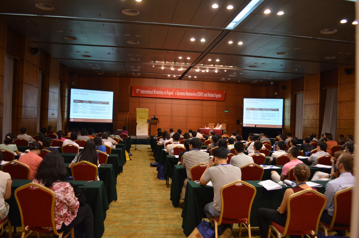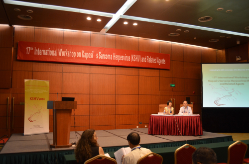 本次会议安排了近60场的大会报告及Poster展示专场,从不同角度探讨了KSHV及相关病毒的最新研究进展,包括流行病学、治疗、信号通路、病毒宿主相互作用、病毒microRNA和基因表达、潜伏期和裂解期复制、病毒结构和病毒致病机理等。报告人汇报了各自的最新研究进展和成果,与会专家学者围绕这些方向进行了深入、充分地讨论和交流。 今年正值KSHV发现20周年,因此会议还特别邀请了KSHV的发现者,美国科学院院士、匹兹堡大学癌症研究所Patrick S. Moore教授在晚宴上做了“庆祝KSHV发现20周年”的报告。金沙集团1862cc院士北京协和医科大学校长曾益新教授、金沙集团1862cc张先恩研究员、高光侠研究员应邀出席了晚宴。本次会议还决定第18届KSHV年会将于2015年在美国迈阿密召开。
