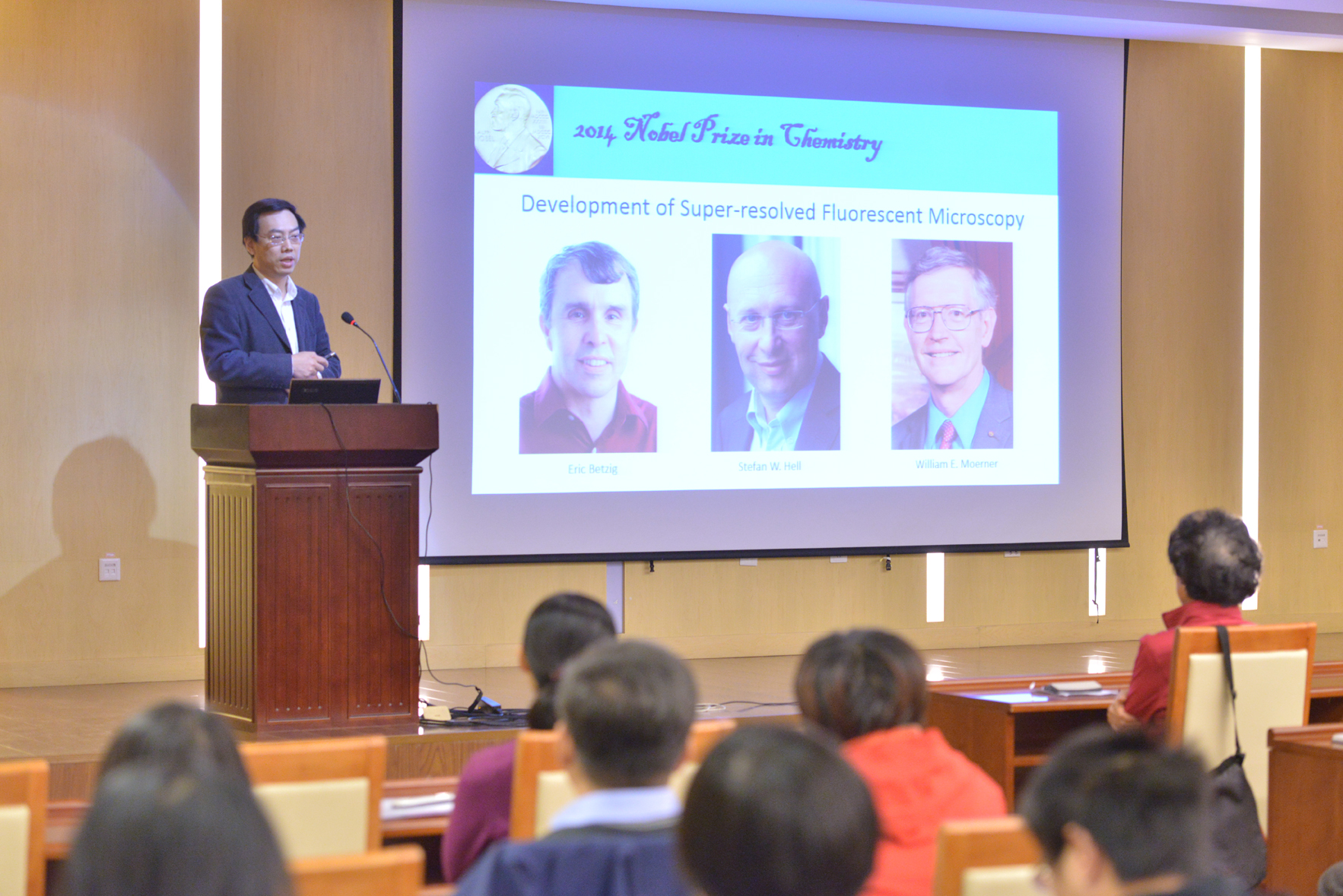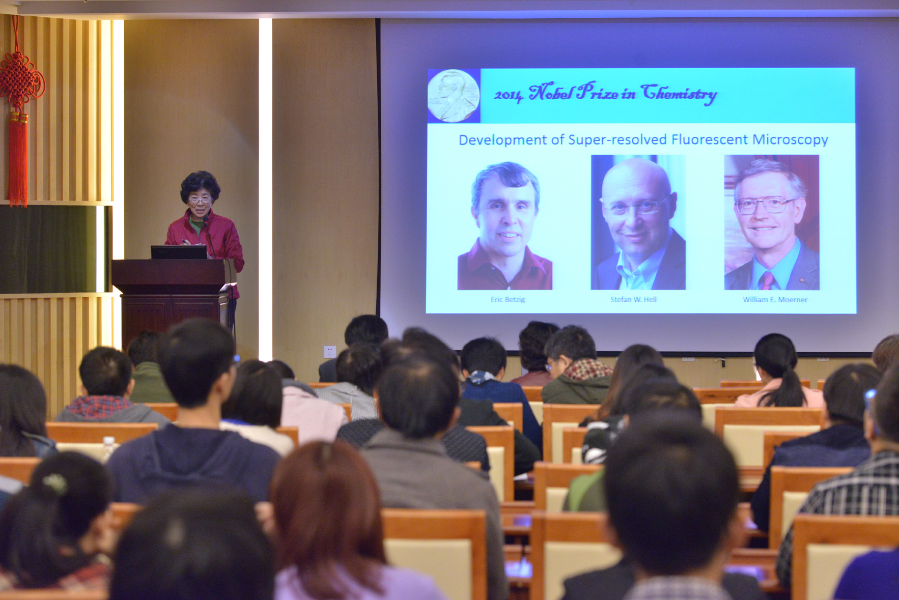 2014年10月21日上午, 生物物理研究所蛋白质科学大楼的9501会议室里座无虚席,近两百名来自生物物理所及附近研究机构的科研人员和研究生在这里聆听2个精彩的对2014年度诺贝尔化学奖及生理学或医学奖的解读报告。