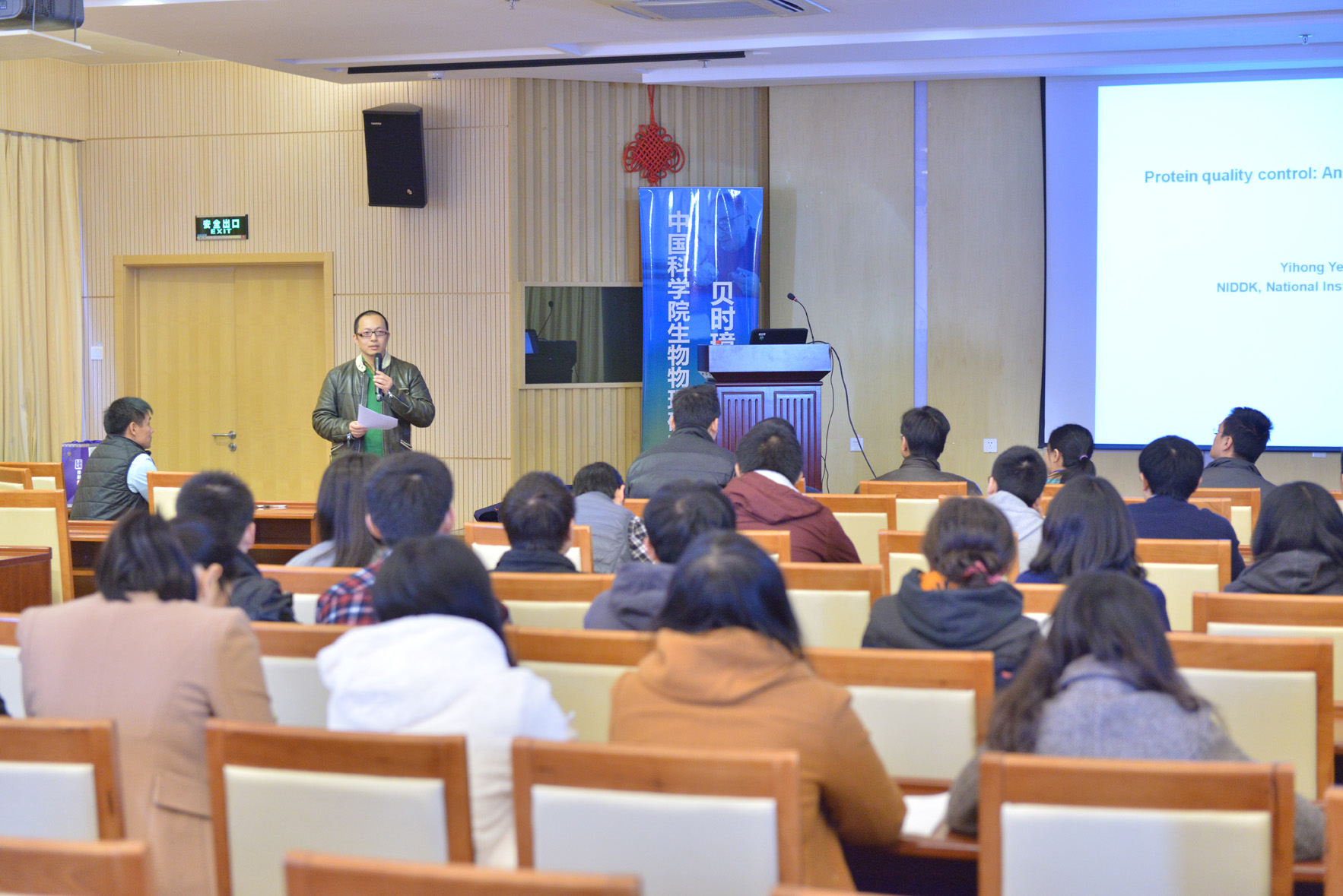 2014年11月14日,应生物物理所生物大分子国家重点实验室的邀请,美国国立卫生研究院分子生物学系高级研究员Yihong Ye博士来所学术交流,在9501会议室作了题为“Protein quality control: An old dog with a new trick”的精彩报告。此报告为生物物理研究所“贝时璋讲座”系列报告,由胡俊杰研究员主持。王志珍院士、黄亿华研究员、柳振峰研究员、徐平勇研究员、赵永芳研究员及众多科研人员和研究生聆听了报告。