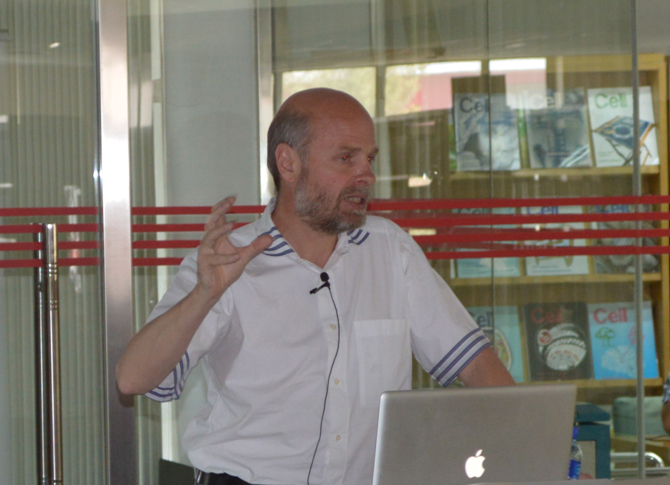 2015年5月15日,应生物物理所焦仁杰研究员邀请,法国国家科学研究中心Strausbourg大学教授Dominique Ferrandon博士来访生物物理所,并在图书馆学术报告厅做了题为“Immune response of the gut epithelium in Drosophila”的精彩报告。报告会由焦仁杰研究员主持,所内外感兴趣的老师和学生参加了此次报告会。