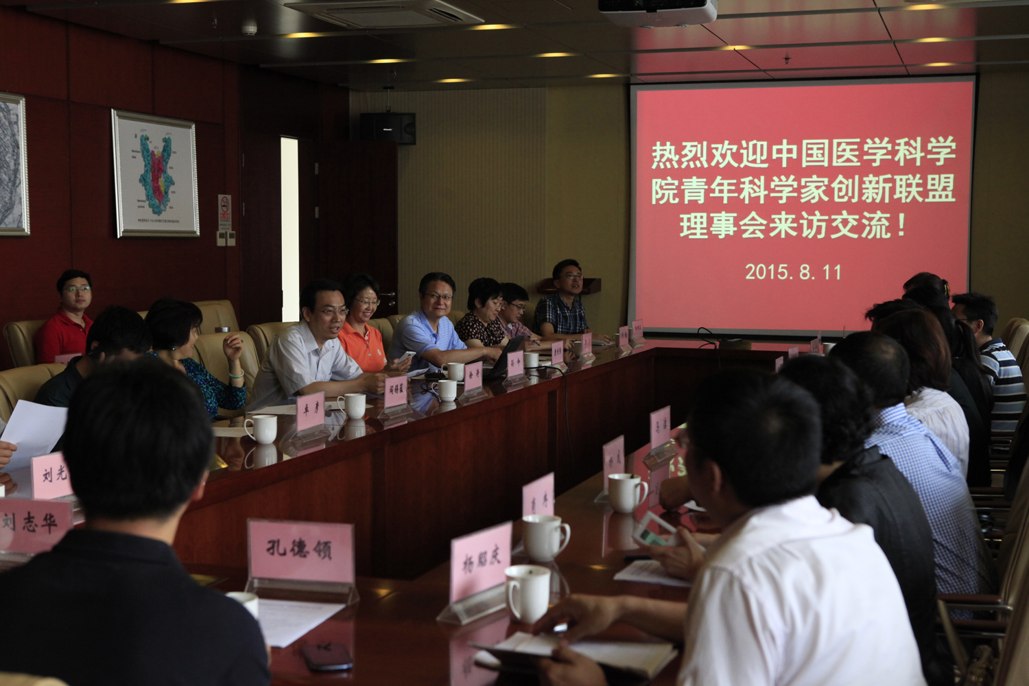 2015年8月11日下午,中国医学科学院青年科学家创新联盟理事会一行17人来我所交流访问。徐涛所长、孙命副所长、部分中青年PI、青促会和青联科学家与来访专家,围绕实施国家创新驱动发展战略的政策措施和合作领域,开展了主题交流。