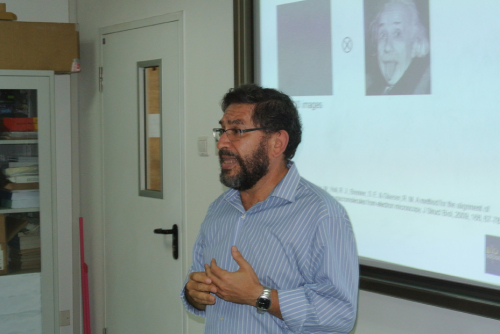 2015年8月26日至31日,西班牙国家生物技术中心教授Carazo Garcia博士受孙飞研究员邀请,访问生物物理所生物成像中心,并在我所开展了一系列的学术活动。27日上午,Carazo Garcia博士在生物理所图书馆报告厅做题为“CryoElectron Microscopy: towards higher resolution in cell biology”的生物大分子国家重点实验室学术报告。27日下午,Carazo Garcia博士在冷冻电镜图像处理小型研讨会(A mini-symposium on cryoEM image processing)上,分别做了题为“Initial Volume Problem in cryo EM: Problem Statement and I2PC new results”和“Structural BioIformatics Domain-Domain Interaction Predictions: How can they help in medium resolution model building”的精彩学术报告。该小型研讨会由孙飞研究员主持,湖南师范大学刘红荣教授,金沙集团1862cc张艳博士、博士研究生邓雨辰同学,金沙集团1862cc计算技术研究所张法博士、万晓华博士也做了简短的报告,并参加了学术交流讨论。28日,Carazo Garcia博士作为主讲教授,出席了在生物物理所多媒体教室召开的冷冻电镜图像处理的专题workshop(Mini-workshop of cryoEM image processing)。