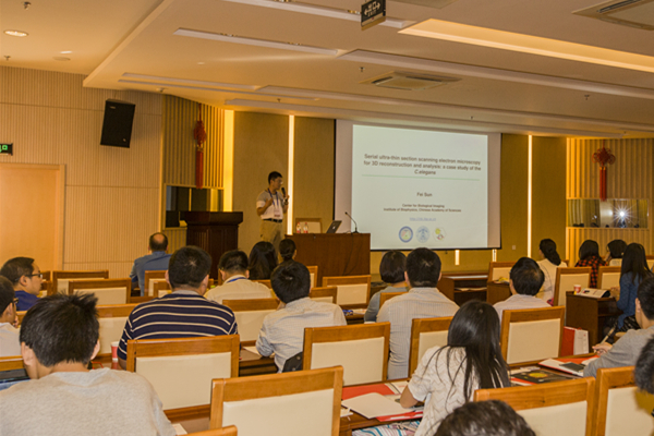 生物成像中心丁玮博士为学员讲解电镜图像处理技术 |