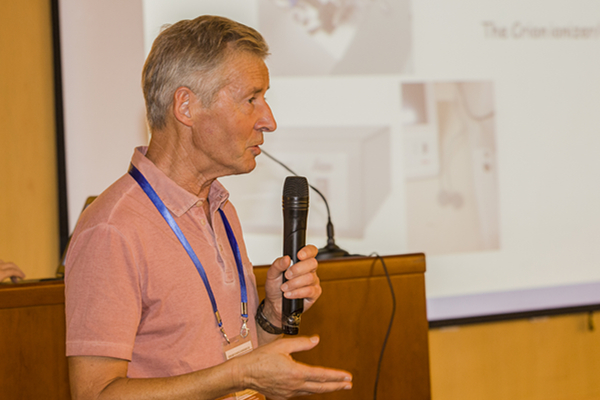 在9月23日的会议报告上,金沙集团1862cc和徕卡仪器有限公司的相关领导做开场发言,生物物理所科学研究平台韩玉刚主任发言表示:徕卡公司与科学研究平台共同组织学术活动,为平台发展和建设起到了积极作用。徕卡仪器有限公司生命科学部许英杰经理也指出:科技创新,离不开高精尖的科研仪器和实验技术。之后,投入式快速冷冻仪Leica EM GP的设计者、来自Nexperion e.U.公司的Guenter Resch博士;被誉为“超薄切片第一人”、来自Diatome公司的技术专家Helmut Gnaegi;FEI公司的技术专家Ben Lich博士、王庆博士;徕卡公司的技术专家Cveta Tomova博士、童艳丽、张艾敬作为主讲人,为大家介绍了细胞电镜冷冻制样前沿相关的高压冷冻技术、冷冻替代技术、投入式快速冷冻技术、冷冻超薄切片技术以及低温电镜数据收集和图像处理技术。生物物理所生物成像中心孙飞主任也受邀做了题为《连续切片扫描电镜成像方法在线虫大尺度三维重构中的应用研究》的报告,为大家介绍了生物成像中心在大尺度高通量连续切片扫描电镜数据收集方面的最新技术和研究成果。会议报告内容精彩纷呈,报告之后的提问环节也十分热烈。
