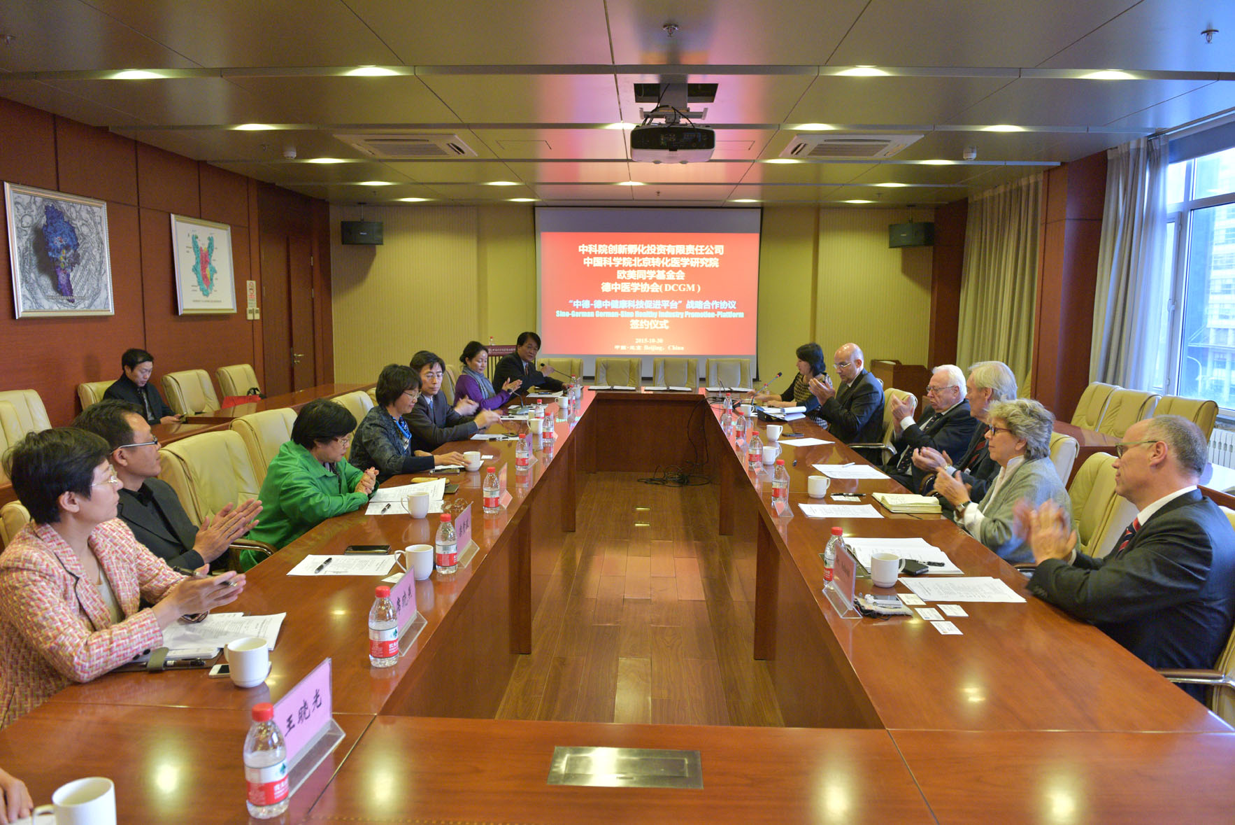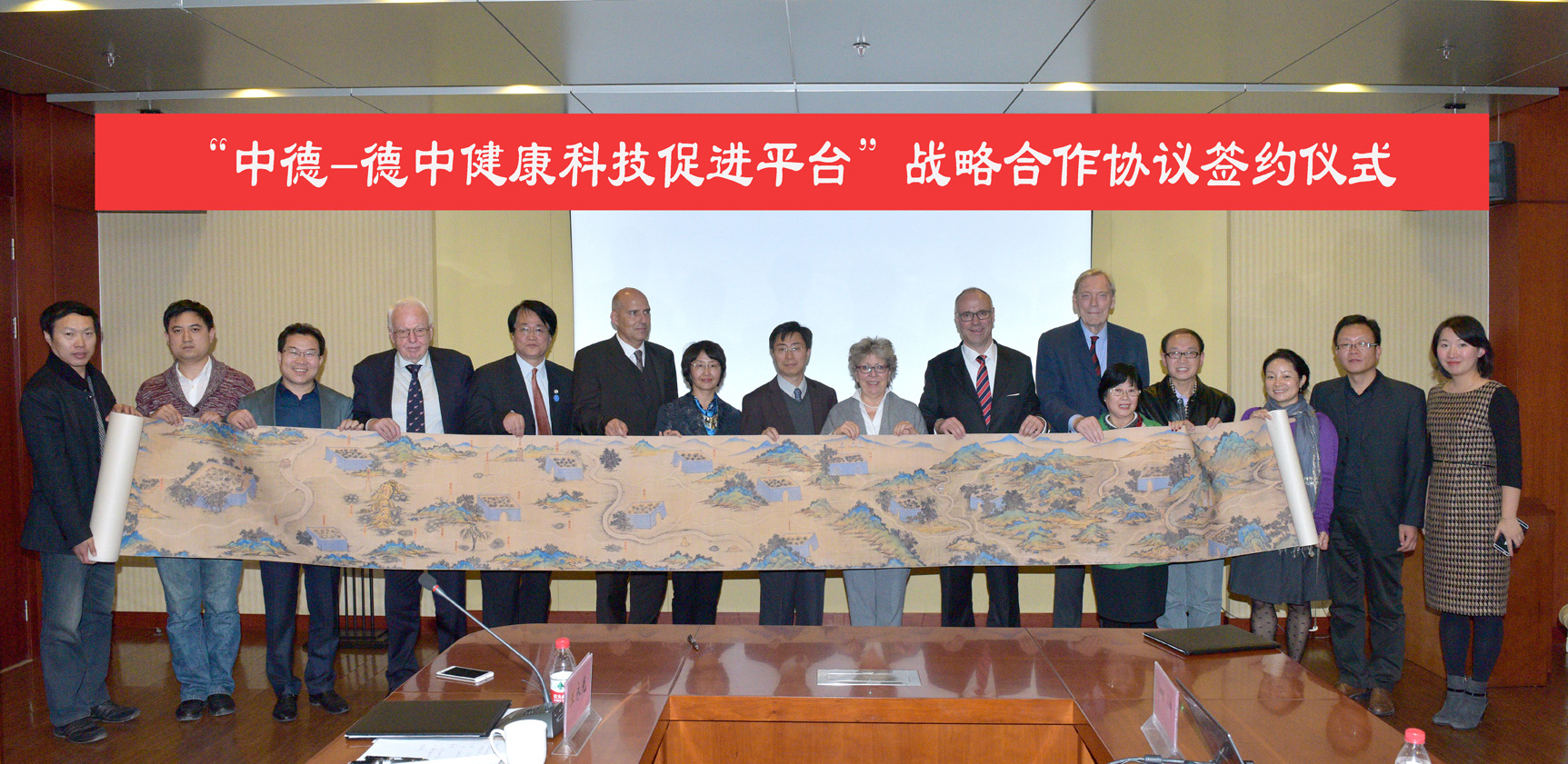 参加签约仪式的还有:原德国联邦联合委员会主席Rainer Hess、德中医学协会执行会长Renate Hess、德中医学协会副会长Prof. Nagel、Dr. Schohl以及Dr. Yang Liu;欧美同学基金会副秘书长王晓光;中科院国有资产经营有限公司企业发展部总经理席晓艳;生物物理研究所科技合作与成果转化处处长栾贵波等。