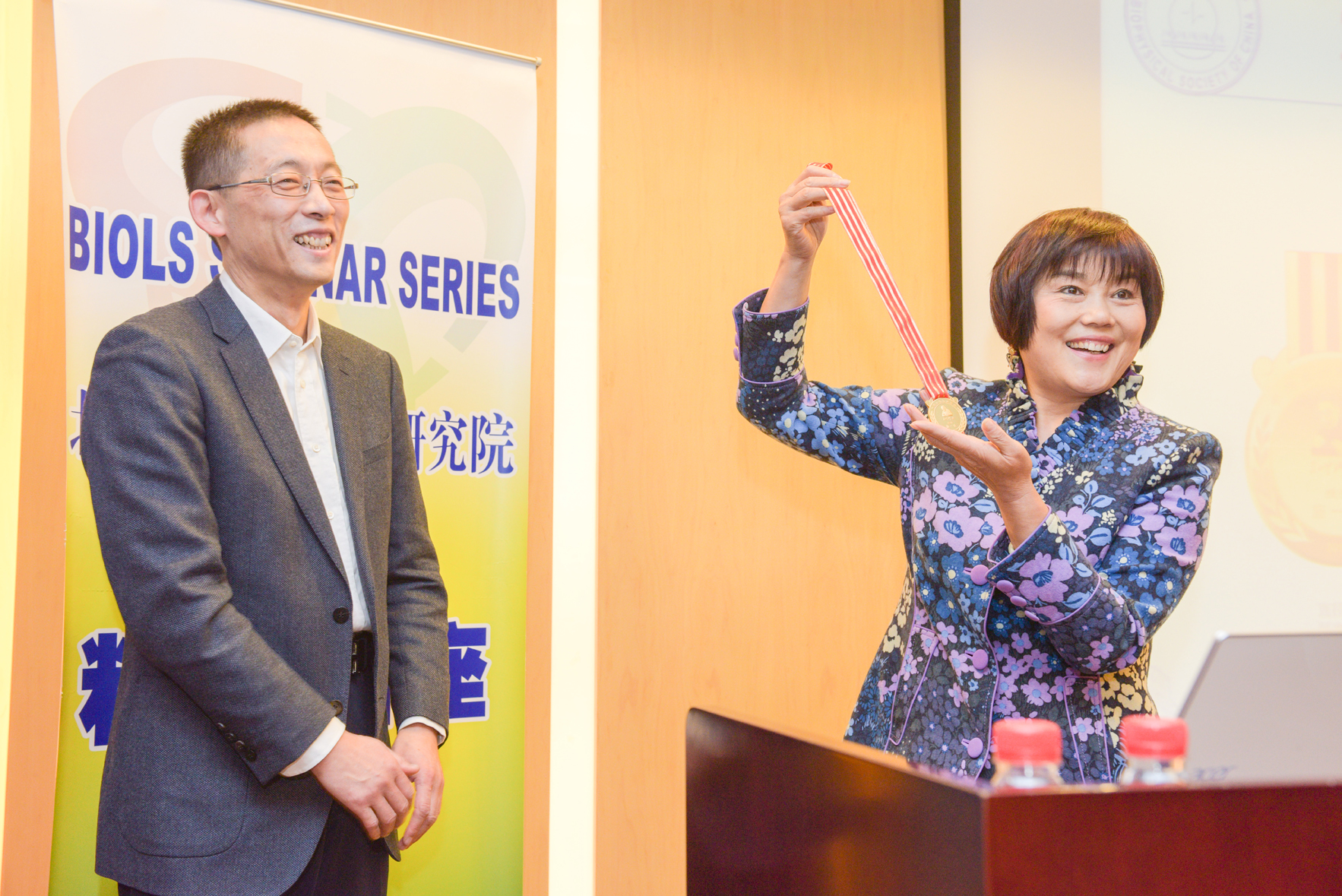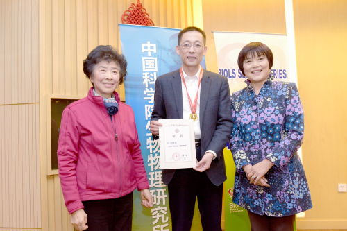 阎锡蕴副理事长代表生物物理学会向施一公院士颁发“贝时璋杰出贡献奖”