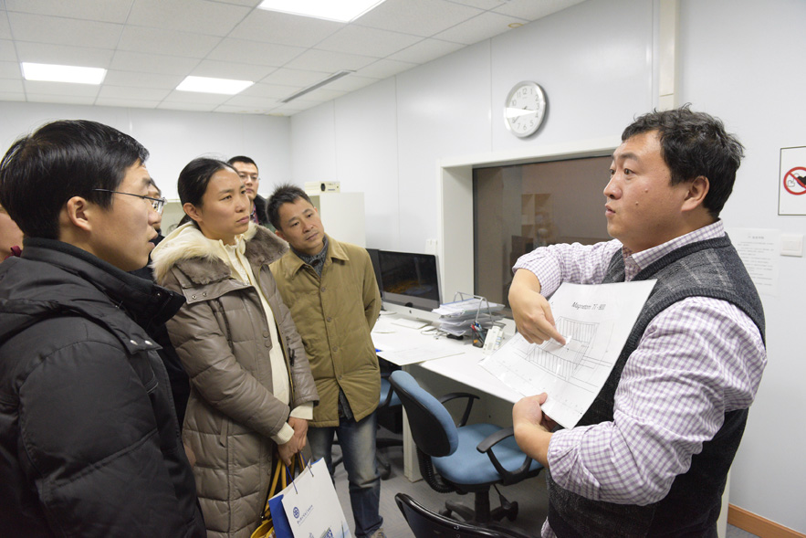 活动由生物物理所青促会组长潘磊研究员主持,他首先为大家介绍了生物物理所的学科布局、主要研究方向以及脑与认知国家重点实验室概况,并鼓励所内和所间成员广泛交流并建立有效合作。接着,王波博士做了题为“意识和知觉——大脑‘眼’中的物质世界”的科普报告。报告内容沿三个方向展开,分别为:意识形成的物质基础、视觉感知觉和意识、脑成像技术和设备。王波在报告中介绍到:”认知科学是研究人类的认知和智力本质和规律的科学。其研究范围包括知觉、注意、记忆、动作、语言、推理和思考,乃至意识在内的各个层次和方面的人类认知和智力活动。它是高度跨学科提出的,也是高度跨学科发展的。视觉感知觉和意识的研究是认知科学最活跃的领域;许多大型先进的脑成像设备皆成为视觉神经表达研究的不可或缺的工具。”报告中,王波博士旁征博引,穿插了很多鲜活的案例和有趣的图像资料,展现了认知科学的神奇瑰丽,引发了大家的热烈谈论,为进一步的交流合作奠定了基础。释疑环节后,大家又跟随王波博士来到了脑磁和核磁实验室,参观了脑磁仪、3T和7T核磁共振设备。为了加深大家对核磁共振成像原理的了解,部分参观者作为被试,亲身体验了核磁成像。其他成员对成像过程进行了观摩,对核磁图像产生的信息、用途乃至目前成像技术的瓶颈有了进一步的理解。