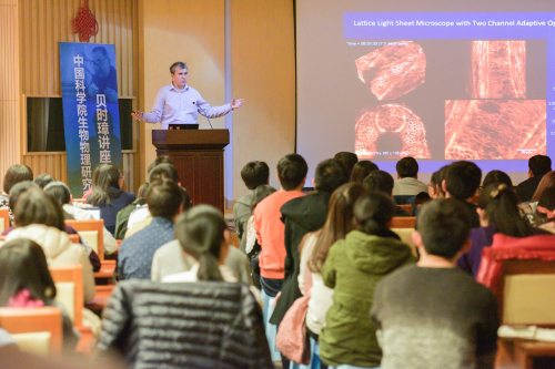 2016年3月15日,应中科院生物物理研究所徐涛所长的邀请,美国霍华德休斯医学研究所Janelia研究园的Eric Betzig院士及Na Ji教授来所进行学术交流。Eric Betzig于下午2:00在生物物理所9501会议室做了题为“Imaging Lifeat High Spatiotemporal Resolution”的“贝时璋讲座”,Na Ji于下午3:30在生物物理所9501会议室做了题为“Wavefront Shaping for in vivo Brain Imaging”的“贝时璋讲座”。报告由徐涛研究员主持,所内外的广大科研人员、学生聆听了报告,大家积极踊跃,报告厅座无虚席。