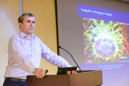 Eric Betzig院士多年来致力于超高分辨率活体成像技术的研究,研发了多种用于分子生物学、细胞生物学、神经科学等的超高分辨成像工具,极大地推进了成像技术及生物学技术的发展。2005年,他和贝尔实验室的研究者使用光活化荧光蛋白发明了超高分辨率定位显微镜,正是这项工作使他获得了2014年诺贝尔化学奖。