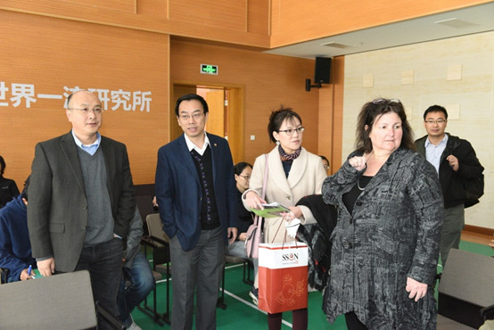 徐涛所长和许瑞明副所长陪同Emillie Marcus到达报告会会场