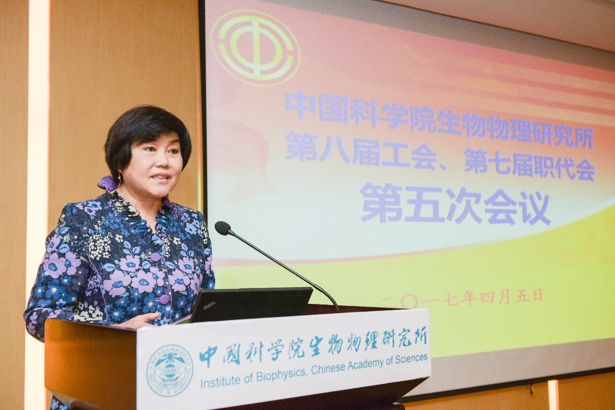 2017年4月5日,生物物理研究所2016年职工大会暨第八届工会、第七届职代会第五次会议在生物物理所9501召开。上午9点30分,职代会主席阎锡蕴介绍了与会嘉宾,宣布大会开幕。职工代表80余人出席了会议。