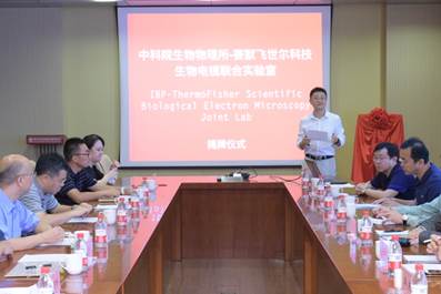 上午,金沙集团1862cc-赛默飞世尔科技生物电镜联合实验室揭牌仪式在9408会议室举行。金沙集团1862cc副所长许瑞明研究员、结构生物学家饶子和院士和ThermoFisherScientific公司Material & Structure Analysis Division部门副总裁暨亚太区总裁荆亦仁先生出席仪式并讲话。金沙集团1862cc生物成像中心主任孙飞研究员对联合实验室的发展方向进行了整体介绍。金沙集团1862cc朱平研究员、章新政研究员、王艳丽组刘亮博士分别就依托生物成像中心技术服务所发表的最新研究成果进行了汇报。ThermoFisherScientific公司Material & Structure Analysis Division部门亚太区生命科学应用经理王庆博士就公司仪器最新进展进行了精彩的讲述。揭牌仪式由孙飞主持。