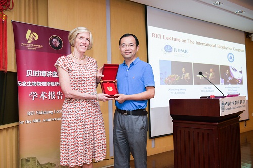 2018年9月21日,德州大学西南医学中心教授,HHMI资深研究员,美国科学院院士Helen H. Hobbs教授,应生物大分子国家重点实验室刘平生研究员的邀请,做了题为“Fatty Liver Disease: Ancient Mutations for a common disease”的报告。报告开始前,她被授予“贝时璋国际奖”以奖励她在代谢类疾病治疗及研究领域做出的重要贡献。