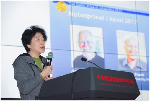2018年10月15日,生物物理所在6号楼10层报告厅举办了2018年诺贝尔奖解读报告会。报告会由王志珍院士主持,王盛典研究员和王曦副研究员分别对诺贝尔生理学或医学奖和化学奖进行解读。