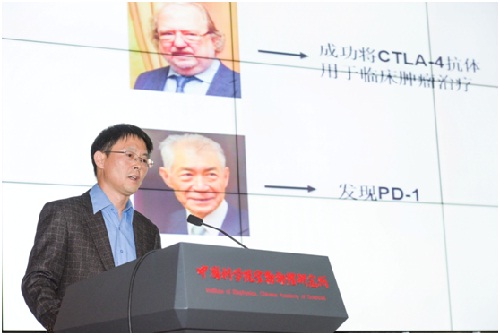 2018年诺贝尔生理学或医学奖授予了美国免疫学家James Allison以及日本免疫学家本庶佑,以表彰他们在癌症疗法以及免疫负调控的抑制领域所作出的贡献。感染与免疫重点实验室副主任王盛典研究员一直从事 T 细胞免疫调控、肿瘤免疫和免疫治疗研究,他本次解读报告的题目是“T细胞共刺激信号与获得诺奖的肿瘤免疫治疗”。他在报告中分享了自己的科研经历,详细介绍了肿瘤免疫治疗的诺奖历程、当前肿瘤免疫治疗成功的关键、CTLA-4与PD-1阻断剂肿瘤治疗的机制、当前肿瘤免疫治疗的学术观点和肿瘤免疫治疗策略成功的关键等学术问题。